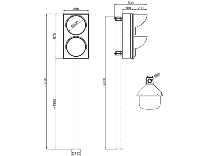 Светофор светодиодный (зеленый / красный) 200 мм, с оцинкованным окрашенным столбом Ø60 мм